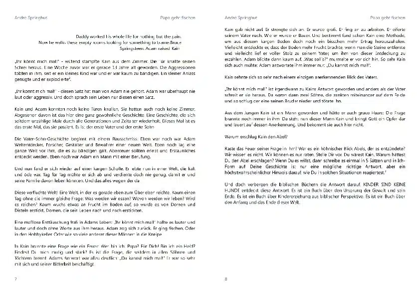KINDER SIND KEINE HUNDE ist der Arbeitstitel meines ersten Buches. Es ist ein Buch über den Ursprung der Gewalt und sein Ende. Es ist ein Buch über Kindererziehung aus biblischer Perspektive. Es ist ein Buch über den Anfang und das Ende dieser Welt. Wie das alles in ein Buch zusammenpaßt, könnt Ihr im ersten Kapitel lesen, das ich jetzt neu geschrieben habe: PAPA GEHT FISCHEN.